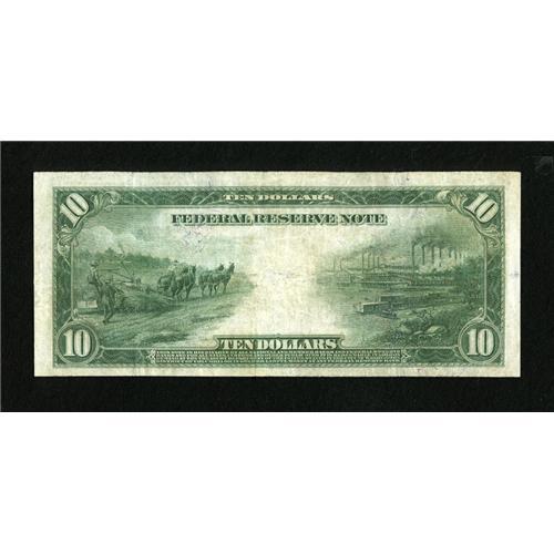 <B>Fr. 893b $10 1914 Red Seal Federal Reserve Note Fine.</B></I> There is some fading of the overprint noted. Well hidden in the field and margin are a few repairs.<BR><BR><b>Shipping:</b> Coins & Currency (<a target="_blank" href="http://www.heritageauctions.com/common/shipping.php">view shipping information</a>)