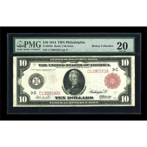 <B>Fr. 894b $10 1914 Red Seal Federal Reserve Note PMG Very Fine 20.</B></I> There are less than 50 of this Friedberg number documented in the census.<BR><BR><b>Shipping:</b> Coins & Currency (<a target="_blank" href="http://www.heritageauctions.com/common/shipping.php">view shipping information</a>)