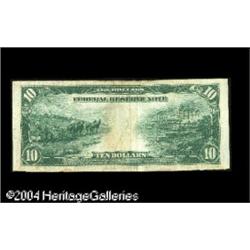 Fr. 895b $10 1914 Red Seal Federal Reserve Note Fine. O <B>Fr. 895b $10 1914 Red Seal Federal Reserve Note Fine-Very Fine.</B></I> Only about one dozen examples are known for this Cleveland Red Seal number. <BR><BR><B>Important notice:</B> Heritage usually auctions material at the rate of 200-250 lots per hour. On some occasions eBay Live bid software or the Internet may not be able to keep up with the pace of the auction. We recommend placing a realistic absentee bid now as insurance to avoid disappointment. Occasionally the auctioneer may eliminate or reject an eBay Live bid, and the auctioneer may also reopen a lot after the close of the eBay live bidding (usually because we missed an audience bid), and may reject your bid even if it shows you as the winning bidder. By bidding via eBay Live, you agree that Heritage may award the lot to another bidder at its sole discretion under the circumstances described above or any other reasonable circumstances. Since eBay bids are not shown to us until we open the lot on the floor, we treat those bids just like floor bids. In most cases the floor responds before the eBay bid is presented to us, due to Internet lag time, so for consistency we have made it a policy that floor bids are always considered first over tie eBay live bids. Also please note that all Heritage lots purchased through eBay Live carry a 20% Buyer's Premium. Please make sure you read the Terms and Conditions before you bid. This lot is being auctioned in conjunction with a live floor auction by Heritage Galleries & Auctioneers. All final auction and invoice information will be supplied by Heritage Galleries & Auctioneers, and all other information should be considered preliminary. Lot:17704