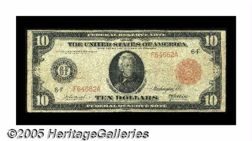 <B>Fr. 897a $10 1914 Red Seal Federal Reserve Note Very Good.</B></I> Only about a dozen and one half of both the "a" and "b" variety of this number are documented. We expect this well-circulated example will sell for no less than...
