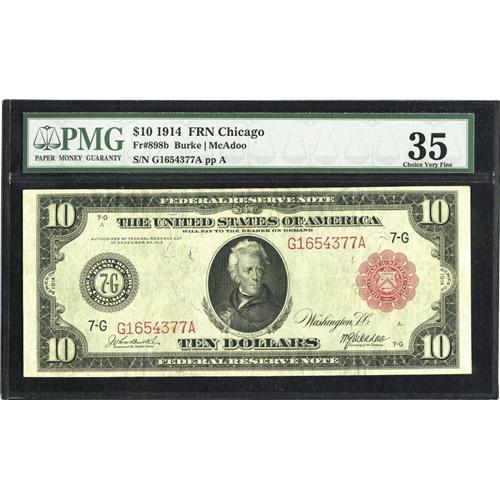 <B>Fr. 898b $10 1914 Red Seal Federal Reserve Note PMG Choice Very Fine 35.</B></I> It has only been a few years since this well margined and nicely centered note was on the market.
