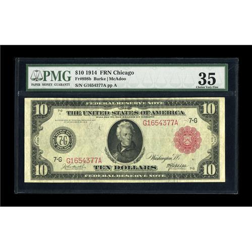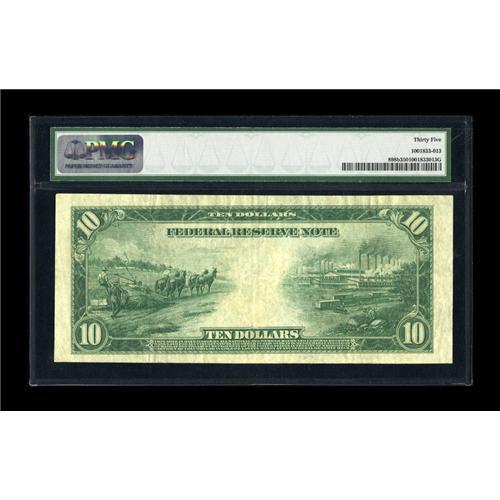 <B>Fr. 898b $10 1914 Red Seal Federal Reserve Note PMG Choice Very Fine 35.</B></I> The overprint has avoided the ravages of age and remains deep red.<BR><I>From The Collection of Greg Southward</B></I><BR><BR><b>Shipping:</b> Coins & Currency (<a target="_blank" href="http://www.heritageauctions.com/common/shipping.php">view shipping information</a>)