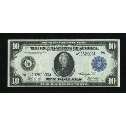 <B>Fr. 904 $10 1914 Federal Reserve Note Very Fine-Extremely Fine.</B></I> This Boston $10 has original, bright paper surfaces. <BR><BR><b>Shipping:</b> Coins & Currency (<a target="_blank" href="http://www.heritageauctions.com/common/shipping.php">view shipping information</a>)