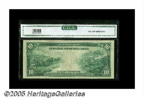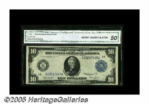 <B>Fr. 905 $10 1914 Federal Reserve Note About New.</B></I> Only about two dozen examples are known of this Burke-Glass signed Boston Ten Dollar Fed.