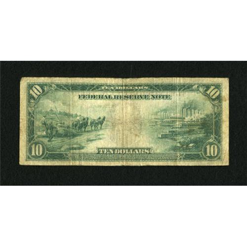 <B>Fr. 905 $10 1914 Federal Reserve Note Very Good.</B></I> Of the five Boston Friedberg numbers for this denomination, this is the scarcest in the census. There are only around 20 serial numbers documented.<BR><BR><b>Shipping:</b> Coins & Currency (<a target="_blank" href="http://www.heritageauctions.com/common/shipping.php">view shipping information</a>)