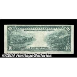 Fr. 906 $10 1914 Federal Reserve Note Gem New. A broad-margined beauty, and a rather scarce note, with about 30 examples known. <BR><BR><B>Important notice:</B> Heritage usually auctions material at the rate of 200-250 lots per hour. On some occasions eBay Live bid software or the Internet may not be able to keep up with the pace of the auction. We recommend placing a realistic absentee bid now as insurance to avoid disappointment. Occasionally the auctioneer may eliminate or reject an eBay Live bid, and the auctioneer may also reopen a lot after the close of the eBay live bidding (usually because we missed an audience bid), and may reject your bid even if it shows you as the winning bidder. By bidding via eBay Live, you agree that Heritage may award the lot to another bidder at its sole discretion under the circumstances described above or any other reasonable circumstances. Since eBay bids are not shown to us until we open the lot on the floor, we treat those bids just like floor bids. In most cases the floor responds before the eBay bid is presented to us, due to Internet lag time, so for consistency we have made it a policy that floor bids are always considered first over tie eBay live bids. Also please note that all Heritage lots purchased through eBay Live carry a 20% Buyer's Premium. Please make sure you read the Terms and Conditions before you bid. <BR><BR><B>IMPORTANT ANNOUNCEMENT ABOUT RESERVES:</B> Heritage now divulges all reserves on its web site 7 days before every auction. If you want to know whether the reserve on this lot has been met, and if not, what the reserve amount is, please visit this lot page on the HeritageCoin.com web site, or email: bid@HeritageGalleries.com