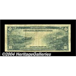 Fr. 906 $10 1914 Federal Reserve Note Fine-Very Fine. The eleventh example we've sold. A perfectly natural note, about mid-range for scarcity. <BR><BR><B>Important notice:</B> Heritage usually auctions material at the rate of 200-250 lots per hour. On some occasions eBay Live bid software or the Internet may not be able to keep up with the pace of the auction. We recommend placing a realistic absentee bid now as insurance to avoid disappointment. Occasionally the auctioneer may eliminate or reject an eBay Live bid, and the auctioneer may also reopen a lot after the close of the eBay live bidding (usually because we missed an audience bid), and may reject your bid even if it shows you as the winning bidder. By bidding via eBay Live, you agree that Heritage may award the lot to another bidder at its sole discretion under the circumstances described above or any other reasonable circumstances. Since eBay bids are not shown to us until we open the lot on the floor, we treat those bids just like floor bids. In most cases the floor responds before the eBay bid is presented to us, due to Internet lag time, so for consistency we have made it a policy that floor bids are always considered first over tie eBay live bids. Also please note that all Heritage lots purchased through eBay Live carry a 20% Buyer's Premium. Please make sure you read the Terms and Conditions before you bid. <BR><BR><B>IMPORTANT ANNOUNCEMENT ABOUT RESERVES:</B> Heritage now divulges all reserves on its web site 7 days before every auction. If you want to know whether the reserve on this lot has been met, and if not, what the reserve amount is, please visit this lot page on the HeritageCoin.com web site, or email: bid@HeritageGalleries.com