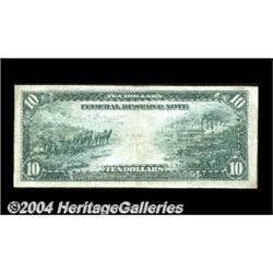 Fr. 906 $10 1914 Federal Reserve Star Note Very Fine. Seven examples are listed in Murray for this scarce Star. This lightly circulated piece has retained excellent color, and it is broadly margined. <BR><BR><B>Important notice:</B> Heritage usually auctions material at the rate of 200-250 lots per hour. On some occasions eBay Live bid software or the Internet may not be able to keep up with the pace of the auction. We recommend placing a realistic absentee bid now as insurance to avoid disappointment. Occasionally the auctioneer may eliminate or reject an eBay Live bid, and the auctioneer may also reopen a lot after the close of the eBay live bidding (usually because we missed an audience bid), and may reject your bid even if it shows you as the winning bidder. By bidding via eBay Live, you agree that Heritage may award the lot to another bidder at its sole discretion under the circumstances described above or any other reasonable circumstances. Since eBay bids are not shown to us until we open the lot on the floor, we treat those bids just like floor bids. In most cases the floor responds before the eBay bid is presented to us, due to Internet lag time, so for consistency we have made it a policy that floor bids are always considered first over tie eBay live bids. Also please note that all Heritage lots purchased through eBay Live carry a 20% Buyer's Premium. Please make sure you read the Terms and Conditions before you bid. <BR><BR><B>IMPORTANT ANNOUNCEMENT ABOUT RESERVES:</B> Heritage now divulges all reserves on its web site 7 days before every auction. If you want to know whether the reserve on this lot has been met, and if not, what the reserve amount is, please visit this lot page on the HeritageCoin.com web site, or email: bid@HeritageGalleries.com
