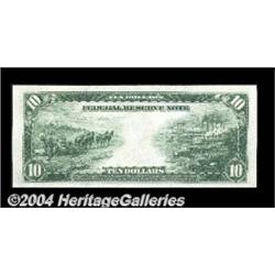 Fr. 907a $10 1914 Federal Reserve Note Superb Gem New. A flawless note, with broad margins, bright colors, original embossing and the look and feel of a note that was printed earlier today. Not a rare number, with the census standing at just under a hundred, but if you're looking for an irreplaceably Superb type example, you've found it. <BR><BR><B>Important notice:</B> Heritage usually auctions material at the rate of 200-250 lots per hour. On some occasions eBay Live bid software or the Internet may not be able to keep up with the pace of the auction. We recommend placing a realistic absentee bid now as insurance to avoid disappointment. Occasionally the auctioneer may eliminate or reject an eBay Live bid, and the auctioneer may also reopen a lot after the close of the eBay live bidding (usually because we missed an audience bid), and may reject your bid even if it shows you as the winning bidder. By bidding via eBay Live, you agree that Heritage may award the lot to another bidder at its sole discretion under the circumstances described above or any other reasonable circumstances. Since eBay bids are not shown to us until we open the lot on the floor, we treat those bids just like floor bids. In most cases the floor responds before the eBay bid is presented to us, due to Internet lag time, so for consistency we have made it a policy that floor bids are always considered first over tie eBay live bids. Also please note that all Heritage lots purchased through eBay Live carry a 20% Buyer's Premium. Please make sure you read the Terms and Conditions before you bid. <BR><BR><B>IMPORTANT ANNOUNCEMENT ABOUT RESERVES:</B> Heritage now divulges all reserves on its web site 7 days before every auction. If you want to know whether the reserve on this lot has been met, and if not, what the reserve amount is, please visit this lot page on the HeritageCoin.com web site, or email: bid@HeritageGalleries.com
