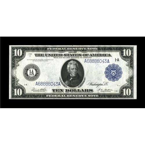 <B>Fr. 907b $10 1914 Federal Reserve Note Choice Crisp Uncirculated.</B></I> This is a well preserved note that is blessed with embossing and natural paper surfaces. This scarce note is unreported, but it falls neatly within a range of a mini-run of CU notes in the census.<BR><BR><b>Shipping:</b> Coins & Currency (<a target="_blank" href="http://www.heritageauctions.com/common/shipping.php">view shipping information</a>)
