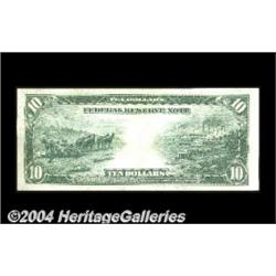 Fr. 907b $10 1914 Federal Reserve Note Gem New. Boston is a scarce district for this "b" type, with only about 20 examples known. This one has deep, original embossing, broad margins and perfect colors. <BR><BR><B>Important notice:</B> Heritage usually auctions material at the rate of 200-250 lots per hour. On some occasions eBay Live bid software or the Internet may not be able to keep up with the pace of the auction. We recommend placing a realistic absentee bid now as insurance to avoid disappointment. Occasionally the auctioneer may eliminate or reject an eBay Live bid, and the auctioneer may also reopen a lot after the close of the eBay live bidding (usually because we missed an audience bid), and may reject your bid even if it shows you as the winning bidder. By bidding via eBay Live, you agree that Heritage may award the lot to another bidder at its sole discretion under the circumstances described above or any other reasonable circumstances. Since eBay bids are not shown to us until we open the lot on the floor, we treat those bids just like floor bids. In most cases the floor responds before the eBay bid is presented to us, due to Internet lag time, so for consistency we have made it a policy that floor bids are always considered first over tie eBay live bids. Also please note that all Heritage lots purchased through eBay Live carry a 20% Buyer's Premium. Please make sure you read the Terms and Conditions before you bid. <BR><BR><B>IMPORTANT ANNOUNCEMENT ABOUT RESERVES:</B> Heritage now divulges all reserves on its web site 7 days before every auction. If you want to know whether the reserve on this lot has been met, and if not, what the reserve amount is, please visit this lot page on the HeritageCoin.com web site, or email: bid@HeritageGalleries.com