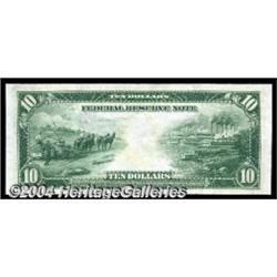 Fr. 907b $10 1914 Federal Reserve Note Gem New. Only two or three high-end notes exist of this rare number with a census of around 20. This beautifully margined, bright piece is certainly one of the best, if not the best. <BR><BR><B>Important notice:</B> Heritage usually auctions material at the rate of 200-250 lots per hour. On some occasions eBay Live bid software or the Internet may not be able to keep up with the pace of the auction. We recommend placing a realistic absentee bid now as insurance to avoid disappointment. Occasionally the auctioneer may eliminate or reject an eBay Live bid, and the auctioneer may also reopen a lot after the close of the eBay live bidding (usually because we missed an audience bid), and may reject your bid even if it shows you as the winning bidder. By bidding via eBay Live, you agree that Heritage may award the lot to another bidder at its sole discretion under the circumstances described above or any other reasonable circumstances. Since eBay bids are not shown to us until we open the lot on the floor, we treat those bids just like floor bids. In most cases the floor responds before the eBay bid is presented to us, due to Internet lag time, so for consistency we have made it a policy that floor bids are always considered first over tie eBay live bids. Also please note that all Heritage lots purchased through eBay Live carry a 20% Buyer's Premium. Please make sure you read the Terms and Conditions before you bid. <BR><BR><B>IMPORTANT ANNOUNCEMENT ABOUT RESERVES:</B> Heritage now divulges all reserves on its web site 7 days before every auction. If you want to know whether the reserve on this lot has been met, and if not, what the reserve amount is, please visit this lot page on the HeritageCoin.com web site, or email: bid@HeritageGalleries.com