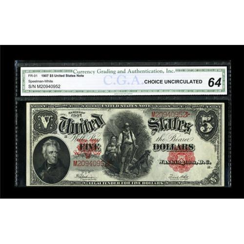 Fr. 91 $5 1907 Legal Tender CGA Choice