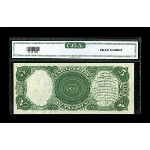 <B>Fr. 91 $5 1907 Legal Tender CGA Choice Uncirculated 64.</B></I> Bold embossing and exceptional color are both present on this Woodchopper. <BR><BR><b>Shipping:</b> Coins & Currency (<a target="_blank" href="http://www.heritageauctions.com/common/shipping.php">view shipping information</a>)