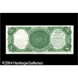 Fr. 91 $5 1907 Legal Tender Choice About New. Brightly <B>Fr. 91 $5 1907 Legal Tender Choice About New.</B></I> Brightly colored and with the appearance of a Superb Gem, but the note has a single light center fold. <BR><BR><B>Important notice:</B> Heritage usually auctions material at the rate of 200-250 lots per hour. On some occasions eBay Live bid software or the Internet may not be able to keep up with the pace of the auction. We recommend placing a realistic absentee bid now as insurance to avoid disappointment. Occasionally the auctioneer may eliminate or reject an eBay Live bid, and the auctioneer may also reopen a lot after the close of the eBay live bidding (usually because we missed an audience bid), and may reject your bid even if it shows you as the winning bidder. By bidding via eBay Live, you agree that Heritage may award the lot to another bidder at its sole discretion under the circumstances described above or any other reasonable circumstances. Since eBay bids are not shown to us until we open the lot on the floor, we treat those bids just like floor bids. In most cases the floor responds before the eBay bid is presented to us, due to Internet lag time, so for consistency we have made it a policy that floor bids are always considered first over tie eBay live bids. Also please note that all Heritage lots purchased through eBay Live carry a 20% Buyer's Premium. Please make sure you read the Terms and Conditions before you bid. This lot is being auctioned in conjunction with a live floor auction by Heritage Galleries & Auctioneers. All final auction and invoice information will be supplied by Heritage Galleries & Auctioneers, and all other information should be considered preliminary. Lot:16929