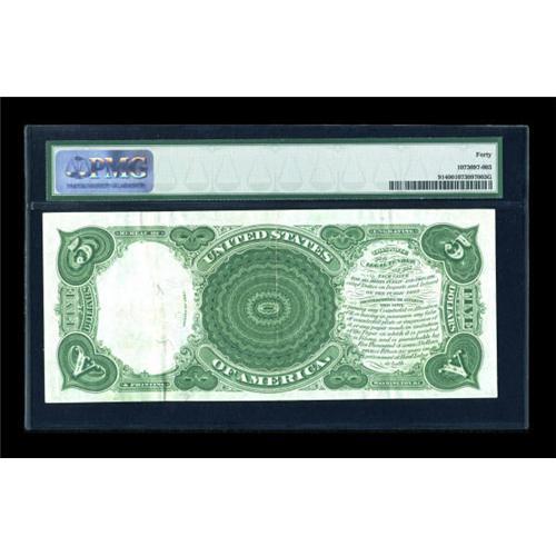 <B>Fr. 91 $5 1907 Legal Tender PMG Extremely Fine 40.</B></I> A nice example of the interesting minor variety with "PCBLIC" error on the back. It is a far more convincing piece than many we have seen of late.<BR><BR><b>Shipping:</b> Coins & Currency (<a target="_blank" href="http://www.heritageauctions.com/common/shipping.php">view shipping information</a>)