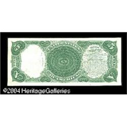 Fr. 91 $5 1907 Legal Tender Star Note Superb Gem New. A <B>Fr. 91 $5 1907 Legal Tender Star Note Superb Gem New.</B></I> An utterly flawless Star Note, with super centering, ideal color and pronounced original embossing. Not at all a rare Star Note, with over 70 examples known, but very few of them are the equal of this piece for quality.<BR><I>From the collection of Malcolm A. Trask.</B></I> <BR><BR><B>Important notice:</B> Heritage usually auctions material at the rate of 200-250 lots per hour. On some occasions eBay Live bid software or the Internet may not be able to keep up with the pace of the auction. We recommend placing a realistic absentee bid now as insurance to avoid disappointment. Occasionally the auctioneer may eliminate or reject an eBay Live bid, and the auctioneer may also reopen a lot after the close of the eBay live bidding (usually because we missed an audience bid), and may reject your bid even if it shows you as the winning bidder. By bidding via eBay Live, you agree that Heritage may award the lot to another bidder at its sole discretion under the circumstances described above or any other reasonable circumstances. Since eBay bids are not shown to us until we open the lot on the floor, we treat those bids just like floor bids. In most cases the floor responds before the eBay bid is presented to us, due to Internet lag time, so for consistency we have made it a policy that floor bids are always considered first over tie eBay live bids. Also please note that all Heritage lots purchased through eBay Live carry a 20% Buyer's Premium. Please make sure you read the Terms and Conditions before you bid. This lot is being auctioned in conjunction with a live floor auction by Heritage Galleries & Auctioneers. All final auction and invoice information will be supplied by Heritage Galleries & Auctioneers, and all other information should be considered preliminary. Lot:16923