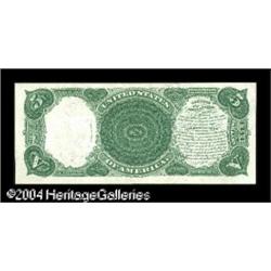 Fr. 91 $5 1907 Legal Tender Very Choice New. This numbe <B>Fr. 91 $5 1907 Legal Tender Very Choice New.</B></I> This number is the most common of the 1907 Pioneer Fives, making it the least expensive way to represent the type. It's a bright and fresh example that comes quite close to the full Gem grade. <BR><BR><B>Important notice:</B> Heritage usually auctions material at the rate of 200-250 lots per hour. On some occasions eBay Live bid software or the Internet may not be able to keep up with the pace of the auction. We recommend placing a realistic absentee bid now as insurance to avoid disappointment. Occasionally the auctioneer may eliminate or reject an eBay Live bid, and the auctioneer may also reopen a lot after the close of the eBay live bidding (usually because we missed an audience bid), and may reject your bid even if it shows you as the winning bidder. By bidding via eBay Live, you agree that Heritage may award the lot to another bidder at its sole discretion under the circumstances described above or any other reasonable circumstances. Since eBay bids are not shown to us until we open the lot on the floor, we treat those bids just like floor bids. In most cases the floor responds before the eBay bid is presented to us, due to Internet lag time, so for consistency we have made it a policy that floor bids are always considered first over tie eBay live bids. Also please note that all Heritage lots purchased through eBay Live carry a 20% Buyer's Premium. Please make sure you read the Terms and Conditions before you bid. This lot is being auctioned in conjunction with a live floor auction by Heritage Galleries & Auctioneers. All final auction and invoice information will be supplied by Heritage Galleries & Auctioneers, and all other information should be considered preliminary. Lot:16925