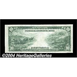 Fr. 911b $10 1914 Federal Reserve Note Very Choice New. With a drop more bottom margin at the right end, this scarcer "b" type Ten would be a Superb Gem. <BR><BR><B>Important notice:</B> Heritage usually auctions material at the rate of 200-250 lots per hour. On some occasions eBay Live bid software or the Internet may not be able to keep up with the pace of the auction. We recommend placing a realistic absentee bid now as insurance to avoid disappointment. Occasionally the auctioneer may eliminate or reject an eBay Live bid, and the auctioneer may also reopen a lot after the close of the eBay live bidding (usually because we missed an audience bid), and may reject your bid even if it shows you as the winning bidder. By bidding via eBay Live, you agree that Heritage may award the lot to another bidder at its sole discretion under the circumstances described above or any other reasonable circumstances. Since eBay bids are not shown to us until we open the lot on the floor, we treat those bids just like floor bids. In most cases the floor responds before the eBay bid is presented to us, due to Internet lag time, so for consistency we have made it a policy that floor bids are always considered first over tie eBay live bids. Also please note that all Heritage lots purchased through eBay Live carry a 20% Buyer's Premium. Please make sure you read the Terms and Conditions before you bid. <BR><BR><B>IMPORTANT ANNOUNCEMENT ABOUT RESERVES:</B> Heritage now divulges all reserves on its web site 7 days before every auction. If you want to know whether the reserve on this lot has been met, and if not, what the reserve amount is, please visit this lot page on the HeritageCoin.com web site, or email: bid@HeritageGalleries.com