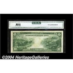 Fr. 911c $10 1914 Federal Reserve Note Gem New. One of the most common "c" type Feds, and a very nice example. The colors are outstanding, and it appears that the note is held from a higher grade simply due to a somewhat tight top margin toward the right end. <BR><BR><B>Important notice:</B> Heritage usually auctions material at the rate of 200-250 lots per hour. On some occasions eBay Live bid software or the Internet may not be able to keep up with the pace of the auction. We recommend placing a realistic absentee bid now as insurance to avoid disappointment. Occasionally the auctioneer may eliminate or reject an eBay Live bid, and the auctioneer may also reopen a lot after the close of the eBay live bidding (usually because we missed an audience bid), and may reject your bid even if it shows you as the winning bidder. By bidding via eBay Live, you agree that Heritage may award the lot to another bidder at its sole discretion under the circumstances described above or any other reasonable circumstances. Since eBay bids are not shown to us until we open the lot on the floor, we treat those bids just like floor bids. In most cases the floor responds before the eBay bid is presented to us, due to Internet lag time, so for consistency we have made it a policy that floor bids are always considered first over tie eBay live bids. Also please note that all Heritage lots purchased through eBay Live carry a 20% Buyer's Premium. Please make sure you read the Terms and Conditions before you bid. <BR><BR><B>IMPORTANT ANNOUNCEMENT ABOUT RESERVES:</B> Heritage now divulges all reserves on its web site 7 days before every auction. If you want to know whether the reserve on this lot has been met, and if not, what the reserve amount is, please visit this lot page on the HeritageCoin.com web site, or email: bid@HeritageGalleries.com
