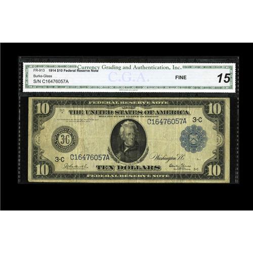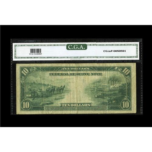 Fr. 913 $10 1914 Federal Reserve Note CGA Fine 15. Well Fr. 913 $10 1914 Federal Reserve Note CGA Fi