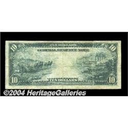 Fr. 914 $10 1914 Federal Reserve Note Fine. The seventh example we've sold, with a total census of not quite triple that. Solid and problem free. <BR><BR><B>Important notice:</B> Heritage usually auctions material at the rate of 200-250 lots per hour. On some occasions eBay Live bid software or the Internet may not be able to keep up with the pace of the auction. We recommend placing a realistic absentee bid now as insurance to avoid disappointment. Occasionally the auctioneer may eliminate or reject an eBay Live bid, and the auctioneer may also reopen a lot after the close of the eBay live bidding (usually because we missed an audience bid), and may reject your bid even if it shows you as the winning bidder. By bidding via eBay Live, you agree that Heritage may award the lot to another bidder at its sole discretion under the circumstances described above or any other reasonable circumstances. Since eBay bids are not shown to us until we open the lot on the floor, we treat those bids just like floor bids. In most cases the floor responds before the eBay bid is presented to us, due to Internet lag time, so for consistency we have made it a policy that floor bids are always considered first over tie eBay live bids. Also please note that all Heritage lots purchased through eBay Live carry a 20% Buyer's Premium. Please make sure you read the Terms and Conditions before you bid. <BR><BR><B>IMPORTANT ANNOUNCEMENT ABOUT RESERVES:</B> Heritage now divulges all reserves on its web site 7 days before every auction. If you want to know whether the reserve on this lot has been met, and if not, what the reserve amount is, please visit this lot page on the HeritageCoin.com web site, or email: bid@HeritageGalleries.com