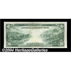 Fr. 915a $10 1914 Federal Reserve Note Choice New. Two minutely bent corners away from being a Gem. Bright, fully original and most attractive. <BR><BR><B>Important notice:</B> Heritage usually auctions material at the rate of 200-250 lots per hour. On some occasions eBay Live bid software or the Internet may not be able to keep up with the pace of the auction. We recommend placing a realistic absentee bid now as insurance to avoid disappointment. Occasionally the auctioneer may eliminate or reject an eBay Live bid, and the auctioneer may also reopen a lot after the close of the eBay live bidding (usually because we missed an audience bid), and may reject your bid even if it shows you as the winning bidder. By bidding via eBay Live, you agree that Heritage may award the lot to another bidder at its sole discretion under the circumstances described above or any other reasonable circumstances. Since eBay bids are not shown to us until we open the lot on the floor, we treat those bids just like floor bids. In most cases the floor responds before the eBay bid is presented to us, due to Internet lag time, so for consistency we have made it a policy that floor bids are always considered first over tie eBay live bids. Also please note that all Heritage lots purchased through eBay Live carry a 20% Buyer's Premium. Please make sure you read the Terms and Conditions before you bid. <BR><BR><B>IMPORTANT ANNOUNCEMENT ABOUT RESERVES:</B> Heritage now divulges all reserves on its web site 7 days before every auction. If you want to know whether the reserve on this lot has been met, and if not, what the reserve amount is, please visit this lot page on the HeritageCoin.com web site, or email: bid@HeritageGalleries.com