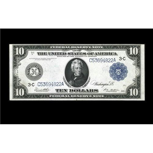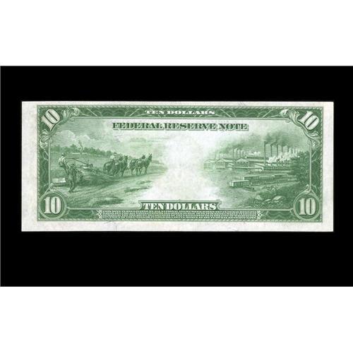 <B>Fr. 915a $10 1914 Federal Reserve Note New.</B></I> Strong color dominates this issue that lacks surface originality.