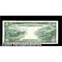 Fr. 915c $10 1914 Federal Reserve Note Superb Gem New. This Philadelphia District example is the most common of the "c"-type Tens. Although it is far from a common note, with only about two dozen examples known in all grades combined. It's an ideal piece to represent this scarce type, as they simply do not come any finer. It's deeply originally embossed, with bright colors, ideal centering and super eye appeal. <BR><BR><B>Important notice:</B> Heritage usually auctions material at the rate of 200-250 lots per hour. On some occasions eBay Live bid software or the Internet may not be able to keep up with the pace of the auction. We recommend placing a realistic absentee bid now as insurance to avoid disappointment. Occasionally the auctioneer may eliminate or reject an eBay Live bid, and the auctioneer may also reopen a lot after the close of the eBay live bidding (usually because we missed an audience bid), and may reject your bid even if it shows you as the winning bidder. By bidding via eBay Live, you agree that Heritage may award the lot to another bidder at its sole discretion under the circumstances described above or any other reasonable circumstances. Since eBay bids are not shown to us until we open the lot on the floor, we treat those bids just like floor bids. In most cases the floor responds before the eBay bid is presented to us, due to Internet lag time, so for consistency we have made it a policy that floor bids are always considered first over tie eBay live bids. Also please note that all Heritage lots purchased through eBay Live carry a 20% Buyer's Premium. Please make sure you read the Terms and Conditions before you bid. <BR><BR><B>IMPORTANT ANNOUNCEMENT ABOUT RESERVES:</B> Heritage now divulges all reserves on its web site 7 days before every auction. If you want to know whether the reserve on this lot has been met, and if not, what the reserve amount is, please visit this lot page on the HeritageCoin.com web site, or email: bid@HeritageGalleries.com