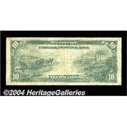Fr. 916 $10 1914 Federal Reserve Note Fine. A rare Fed, and only the fourth example of its number that we've sold. Strictly original and totally solid for the grade, without a hint of a mark or defect. These rare Feds, in spite of their recent advances, are still, in our opinion, one of the better items to put away for the future, as they are truly underappreciated. <BR><BR><B>Important notice:</B> Heritage usually auctions material at the rate of 200-250 lots per hour. On some occasions eBay Live bid software or the Internet may not be able to keep up with the pace of the auction. We recommend placing a realistic absentee bid now as insurance to avoid disappointment. Occasionally the auctioneer may eliminate or reject an eBay Live bid, and the auctioneer may also reopen a lot after the close of the eBay live bidding (usually because we missed an audience bid), and may reject your bid even if it shows you as the winning bidder. By bidding via eBay Live, you agree that Heritage may award the lot to another bidder at its sole discretion under the circumstances described above or any other reasonable circumstances. Since eBay bids are not shown to us until we open the lot on the floor, we treat those bids just like floor bids. In most cases the floor responds before the eBay bid is presented to us, due to Internet lag time, so for consistency we have made it a policy that floor bids are always considered first over tie eBay live bids. Also please note that all Heritage lots purchased through eBay Live carry a 20% Buyer's Premium. Please make sure you read the Terms and Conditions before you bid. <BR><BR><B>IMPORTANT ANNOUNCEMENT ABOUT RESERVES:</B> Heritage now divulges all reserves on its web site 7 days before every auction. If you want to know whether the reserve on this lot has been met, and if not, what the reserve amount is, please visit this lot page on the HeritageCoin.com web site, or email: bid@HeritageGalleries.com