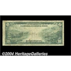 Fr. 916 $10 1914 Federal Reserve Note Fine. This is only the fifth example that we've sold of this rare number. Although certainly well circulated, it's natural and free of all defects. <BR><BR><B>Important notice:</B> Heritage usually auctions material at the rate of 200-250 lots per hour. On some occasions eBay Live bid software or the Internet may not be able to keep up with the pace of the auction. We recommend placing a realistic absentee bid now as insurance to avoid disappointment. Occasionally the auctioneer may eliminate or reject an eBay Live bid, and the auctioneer may also reopen a lot after the close of the eBay live bidding (usually because we missed an audience bid), and may reject your bid even if it shows you as the winning bidder. By bidding via eBay Live, you agree that Heritage may award the lot to another bidder at its sole discretion under the circumstances described above or any other reasonable circumstances. Since eBay bids are not shown to us until we open the lot on the floor, we treat those bids just like floor bids. In most cases the floor responds before the eBay bid is presented to us, due to Internet lag time, so for consistency we have made it a policy that floor bids are always considered first over tie eBay live bids. Also please note that all Heritage lots purchased through eBay Live carry a 20% Buyer's Premium. Please make sure you read the Terms and Conditions before you bid. <BR><BR><B>IMPORTANT ANNOUNCEMENT ABOUT RESERVES:</B> Heritage now divulges all reserves on its web site 7 days before every auction. If you want to know whether the reserve on this lot has been met, and if not, what the reserve amount is, please visit this lot page on the HeritageCoin.com web site, or email: bid@HeritageGalleries.com
