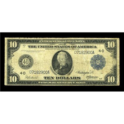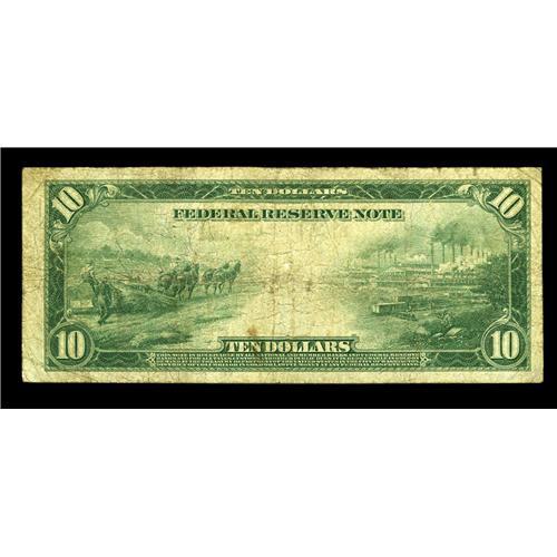 <B>Fr. 916 $10 1914 Federal Reserve Note Very Good-Fine.</B></I> This is just the sixth example that we've sold of this scarce number. Although certainly well circulated, it's natural and free of all defects.