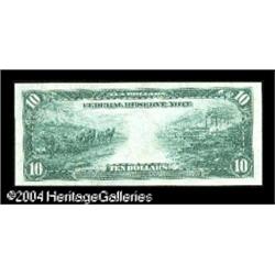 Fr. 918 $10 1914 Federal Reserve Note Star Gem New. Thi <B>Fr. 918 $10 1914 Federal Reserve Note Star Gem New.</B></I> This newly discovered example is the sixth Star known for the number. One of the previous five is listed without a grade, three are heavily circulated and one is an AU, making this broadly margined, strictly original Star very likely the finest known of its number.<BR><I>From the collection of Malcolm A. Trask.</B></I> <BR><BR><B>Important notice:</B> Heritage usually auctions material at the rate of 200-250 lots per hour. On some occasions eBay Live bid software or the Internet may not be able to keep up with the pace of the auction. We recommend placing a realistic absentee bid now as insurance to avoid disappointment. Occasionally the auctioneer may eliminate or reject an eBay Live bid, and the auctioneer may also reopen a lot after the close of the eBay live bidding (usually because we missed an audience bid), and may reject your bid even if it shows you as the winning bidder. By bidding via eBay Live, you agree that Heritage may award the lot to another bidder at its sole discretion under the circumstances described above or any other reasonable circumstances. Since eBay bids are not shown to us until we open the lot on the floor, we treat those bids just like floor bids. In most cases the floor responds before the eBay bid is presented to us, due to Internet lag time, so for consistency we have made it a policy that floor bids are always considered first over tie eBay live bids. Also please note that all Heritage lots purchased through eBay Live carry a 20% Buyer's Premium. Please make sure you read the Terms and Conditions before you bid. This lot is being auctioned in conjunction with a live floor auction by Heritage Galleries & Auctioneers. All final auction and invoice information will be supplied by Heritage Galleries & Auctioneers, and all other information should be considered preliminary. Lot:17713