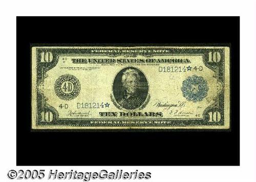 <B>Fr. 918 $10 1914 Federal Reserve Star Note Fine.</B></I> This is a scarce star from the Cleveland district, with Murray listing five and Gengerke eight serial numbers.