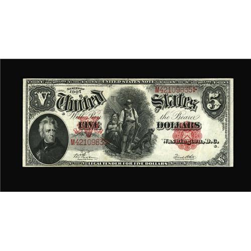 <B>Fr. 92 $5 1907 Legal Tender About New.</B></I> Two center folds millimeters apart separate this note from a full New grade. The overprint is especially bright and well embossed.<BR><BR><b>Shipping:</b> Coins & Currency (<a target="_blank" href="http://www.heritageauctions.com/common/shipping.php">view shipping information</a>)