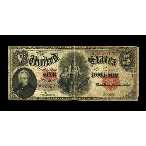 Fr. 92 $5 1907 Legal Tender Star Very Good. Five other Fr. 92 $5 1907 Legal Tender Star Very Good.