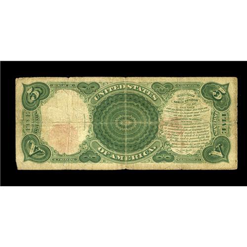 <B>Fr. 92 $5 1907 Legal Tender Star Very Good.</B></I> Five other Fr. 91 stars have been reported and save for a couple of hard folds which break the margins, this is a solid note.<BR><I>From the Large Size Star Note Collection of Richard Merlau</B></I>
