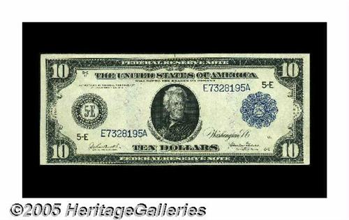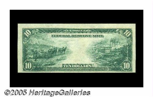 <B>Fr. 921 $10 1914 Federal Reserve Note About New.</B></I> A really rare note with only about a half-dozen examples known. The only uncirculated example is permanently impounded in a museum, and this is distinctly the second finest. A note that certainly deserves to bring...