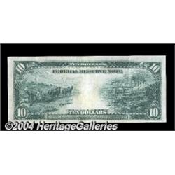 Fr. 922 $10 1914 Federal Reserve Note Very Choice New. A somewhat scarce note, with about two dozen examples known. <BR><BR><B>Important notice:</B> Heritage usually auctions material at the rate of 200-250 lots per hour. On some occasions eBay Live bid software or the Internet may not be able to keep up with the pace of the auction. We recommend placing a realistic absentee bid now as insurance to avoid disappointment. Occasionally the auctioneer may eliminate or reject an eBay Live bid, and the auctioneer may also reopen a lot after the close of the eBay live bidding (usually because we missed an audience bid), and may reject your bid even if it shows you as the winning bidder. By bidding via eBay Live, you agree that Heritage may award the lot to another bidder at its sole discretion under the circumstances described above or any other reasonable circumstances. Since eBay bids are not shown to us until we open the lot on the floor, we treat those bids just like floor bids. In most cases the floor responds before the eBay bid is presented to us, due to Internet lag time, so for consistency we have made it a policy that floor bids are always considered first over tie eBay live bids. Also please note that all Heritage lots purchased through eBay Live carry a 20% Buyer's Premium. Please make sure you read the Terms and Conditions before you bid. <BR><BR><B>IMPORTANT ANNOUNCEMENT ABOUT RESERVES:</B> Heritage now divulges all reserves on its web site 7 days before every auction. If you want to know whether the reserve on this lot has been met, and if not, what the reserve amount is, please visit this lot page on the HeritageCoin.com web site, or email: bid@HeritageGalleries.com