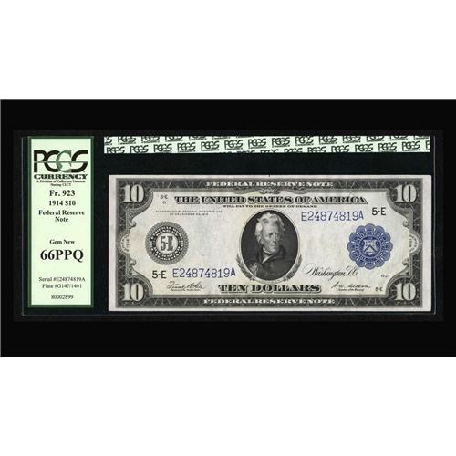 Fr. 923 $10 1914 Federal Reserve Note PCGS Gem New 66PP Fr. 923 $10 1914 Federal Reserve Note PCGS G