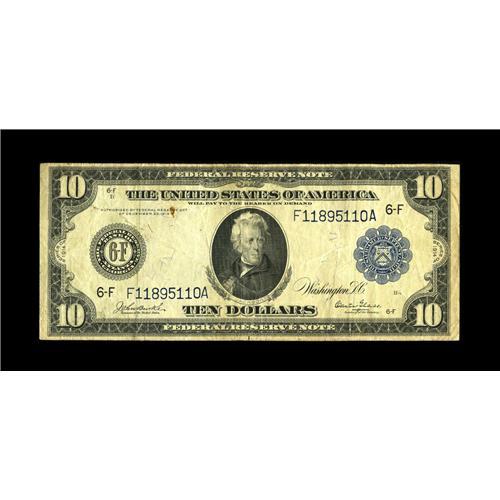 <B>Fr. 925 $10 1914 Federal Reserve Note Fine.</B></I> Not too many auction appearances are seen of this Burke/Glass combination. A small spot is all that affects this soundly margined example.<BR><BR><b>Shipping:</b> Coin/Currency (<a target="_blank" href="http://www.heritageauctions.com/common/shipping.php">view shipping information</a>)