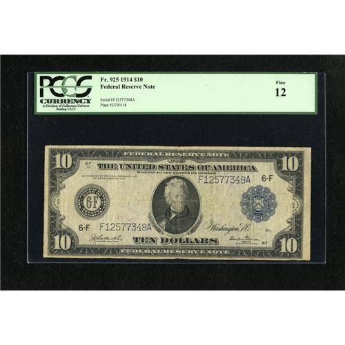 Fr. 925 $10 1914 Federal Reserve Note PCGS Fine
