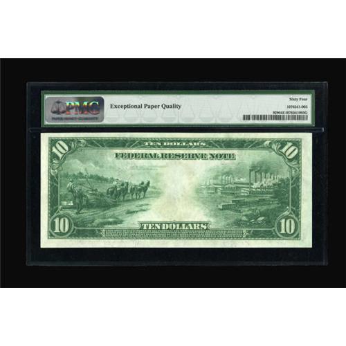 <B>Fr. 929 $10 1914 Federal Reserve Note PMG Choice Uncirculated 64 EPQ.</B></I> New examples of the Burke-Glass signature combination are elusive as they are tightly held.<BR><BR><b>Shipping:</b> Coins & Currency (<a target="_blank" href="http://www.heritageauctions.com/common/shipping.php">view shipping information</a>)