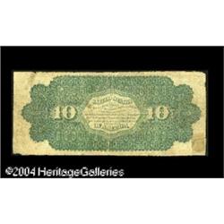 Fr. 93 $10 1862 Legal Tender Very Good. There is a <B>Fr. 93 $10 1862 Legal Tender Very Good.</B></I> There is a little edge damage and one taped corner. <BR><BR><B>Important notice:</B> Heritage usually auctions material at the rate of 200-250 lots per hour. On some occasions eBay Live bid software or the Internet may not be able to keep up with the pace of the auction. We recommend placing a realistic absentee bid now as insurance to avoid disappointment. Occasionally the auctioneer may eliminate or reject an eBay Live bid, and the auctioneer may also reopen a lot after the close of the eBay live bidding (usually because we missed an audience bid), and may reject your bid even if it shows you as the winning bidder. By bidding via eBay Live, you agree that Heritage may award the lot to another bidder at its sole discretion under the circumstances described above or any other reasonable circumstances. Since eBay bids are not shown to us until we open the lot on the floor, we treat those bids just like floor bids. In most cases the floor responds before the eBay bid is presented to us, due to Internet lag time, so for consistency we have made it a policy that floor bids are always considered first over tie eBay live bids. Also please note that all Heritage lots purchased through eBay Live carry a 20% Buyer's Premium. Please make sure you read the Terms and Conditions before you bid. This lot is being auctioned in conjunction with a live floor auction by Heritage Galleries & Auctioneers. All final auction and invoice information will be supplied by Heritage Galleries & Auctioneers, and all other information should be considered preliminary. Lot:16936