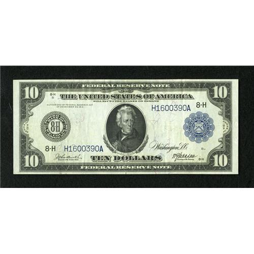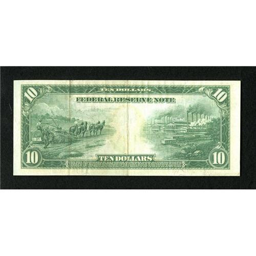 <B>Fr. 932 $10 1914 Federal Reserve Note Very Fine.</B></I> Traces of serial number embossing still remain.<BR><BR><I>From The Bill and Kathy Stella Currency Collection</B></I><BR><BR><b>Shipping:</b> Coins & Currency (<a target="_blank" href="http://www.heritageauctions.com/common/shipping.php">view shipping information</a>)