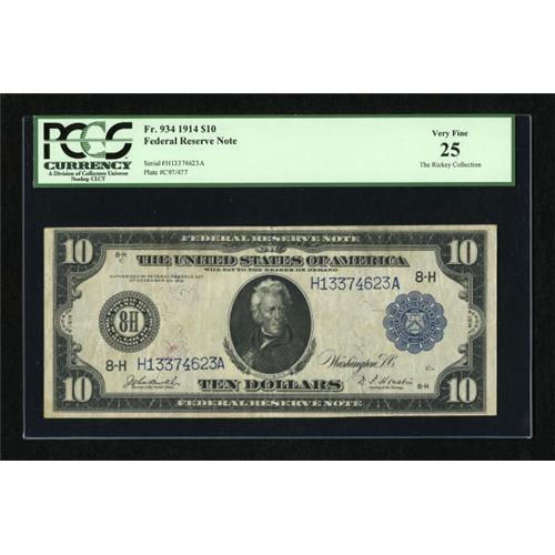 Fr. 934 $10 1914 Federal Reserve Note PCGS Very