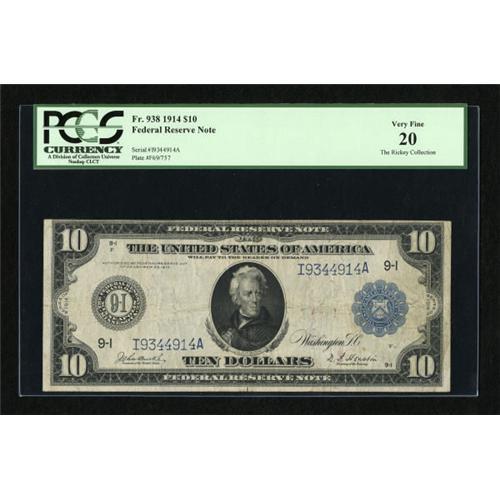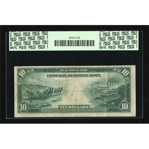 Fr. 938 $10 1914 Federal Reserve Note PCGS Very