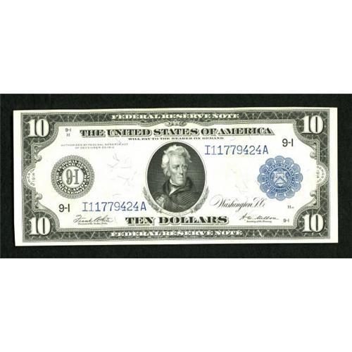 <B>Fr. 939 $10 1914 Federal Reserve Note About New.</B></I> A lateral fold is found on this $10.<BR><BR><b>Shipping:</b> Coins & Currency (<a target="_blank" href="http://www.heritageauctions.com/common/shipping.php">view shipping information</a>)