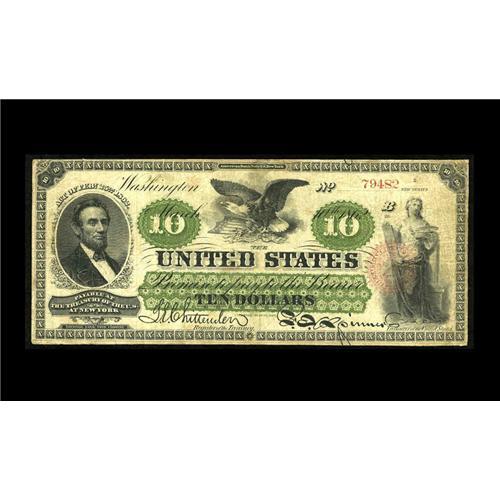 <B>Fr. 94 $10 1862 Legal Tender Fine.</B></I> We have the pleasure of offering two of this scarce Friedberg number. Only mention is for a minor repair at top center, as the note is devoid of any plaguing pinholes.