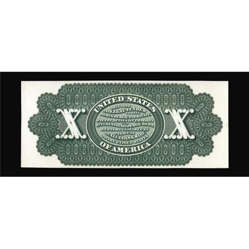 <B>Fr. 94-95b Hessler UNL $10 1863 Legal Tender Back Proof Gem New.</B></I> Last appearing in our FUN 2006 auction, where described, "This back proof was printed on card stock and then attached to a light card stock backing. This specific printing and mounting is not mentioned in Hessler. This sturdy method for proofs certainly helps them to ward off unwanted creases as this example can attest to. This handsome proof has retained its dark green ink over the intervening 140 years."